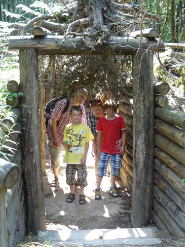 Sandsteinnadeln und bizarre Felsen, urwüchsige Wälder und tief eingeschnittene Wildbäche sind seit 1990 als Nationalpark „Sächsische Schweiz“ geschützt übrigens der einzige in Sachsen. Und genau hier befindet Ihr euch, wenn Ihr zu Gast bei uns in Hinterhermsdorf seid. Zu entdecken gibt es hier jede Menge: Wie ein Borkenkäfer in einen Baumstamm krabbeln, auf dem Rücken einer riesigen Spinne sitzen, durch einen Fuchsbau rutschen dies und noch viel mehr könnt Ihr zum Beispiel in der „Waldhusche“. Praktischer Anschauungsunterricht und Entdeckertour zugleich ist das waldgeschichtliche Freigelände des Nationalparks. Auf einem weiten Waldareal sind mehr als 40 Stationen auf vier vernetzten Themenwegen eingerichtet.